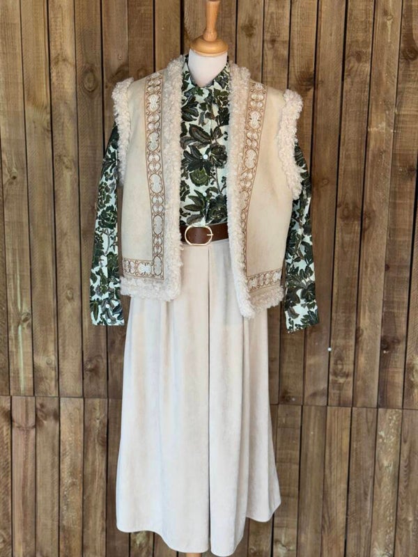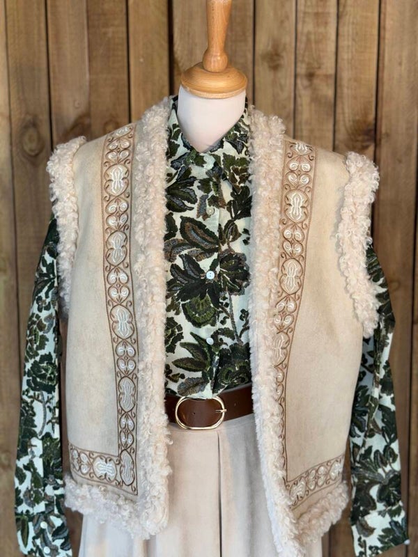 Gilet chaud sans manches à broderie beige claire effet moumoute à l'intérieur Taille S/M