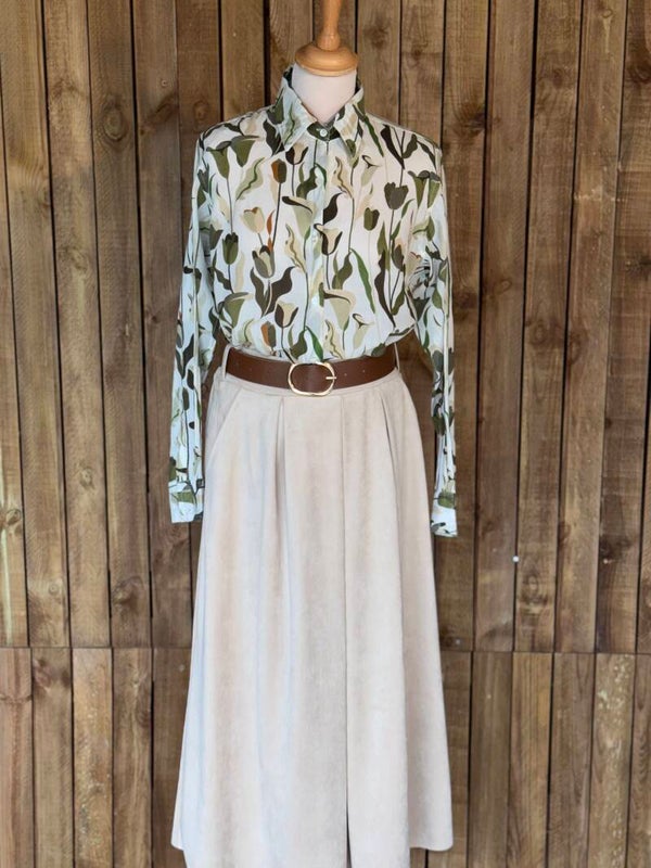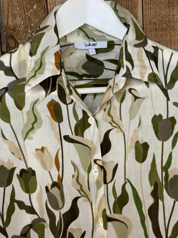 Chemise tulipe avec touche de vert existe aussi en marron clair