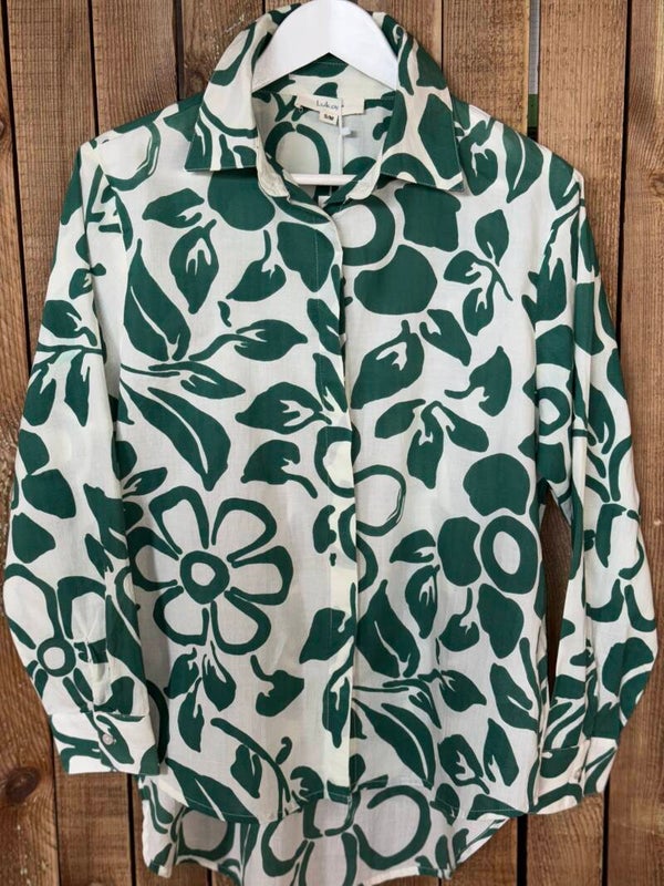 Chemise à fleurs verte