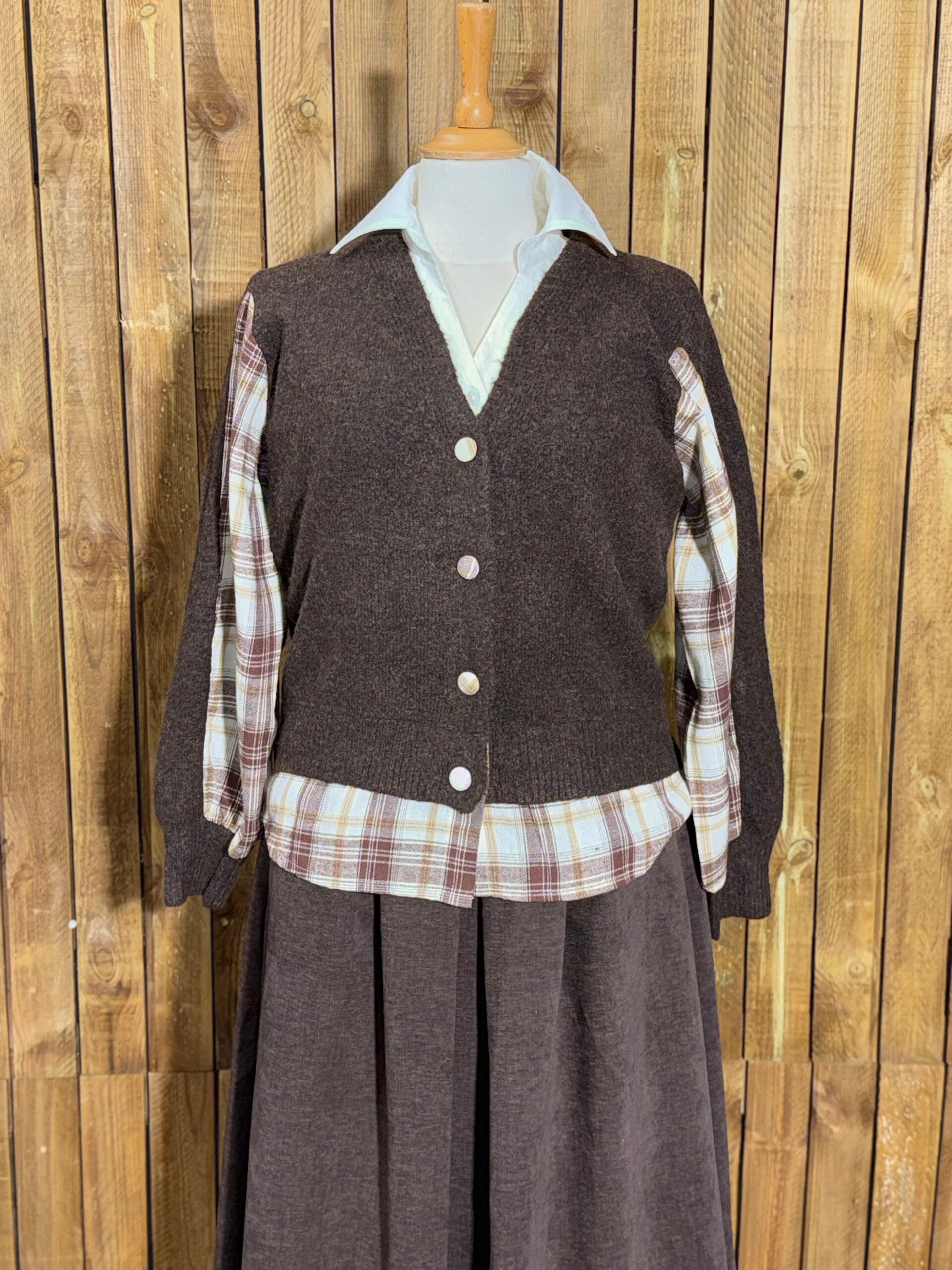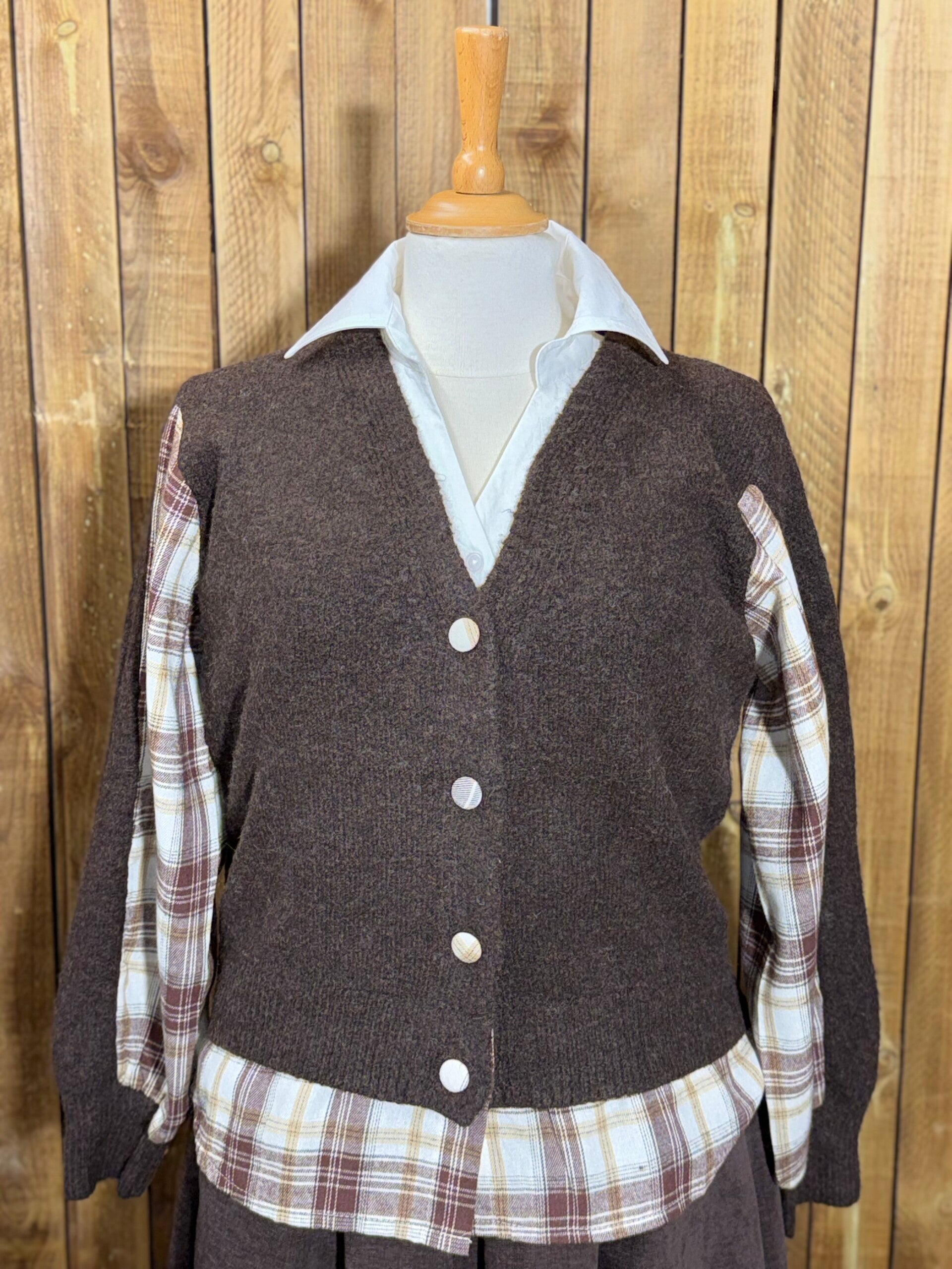 Pull marron chocolat à carreaux taille unique