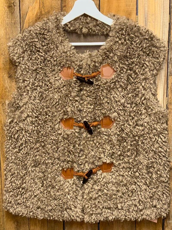 Doudoune sans manches moumoute marron beige existe en couleur chocolat