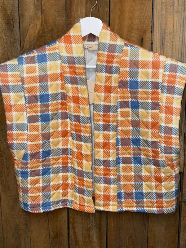 Veste sans manche jaune a carreaux manche courte existe aussi en marron