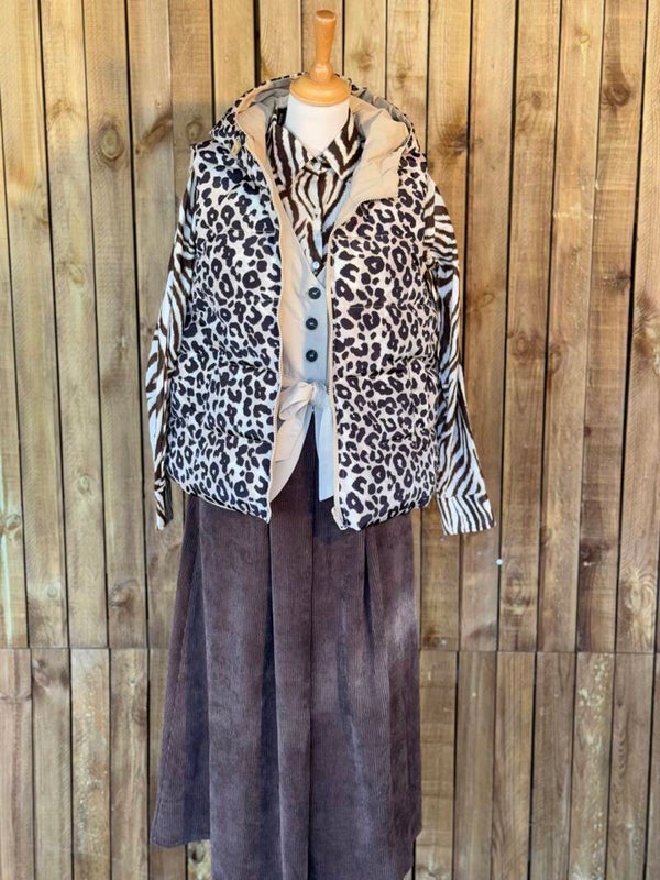 Doudoune sans manches avec capuches léopard