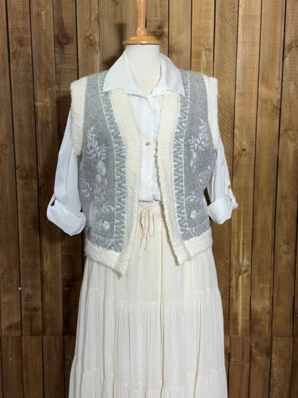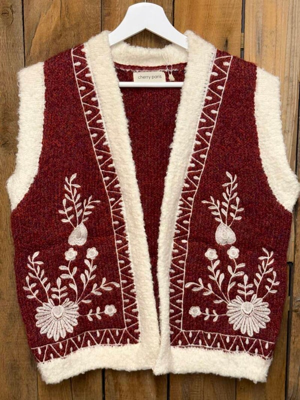 Gilet chaud sans manches bordeaux avec broderie existe en couleur gris
